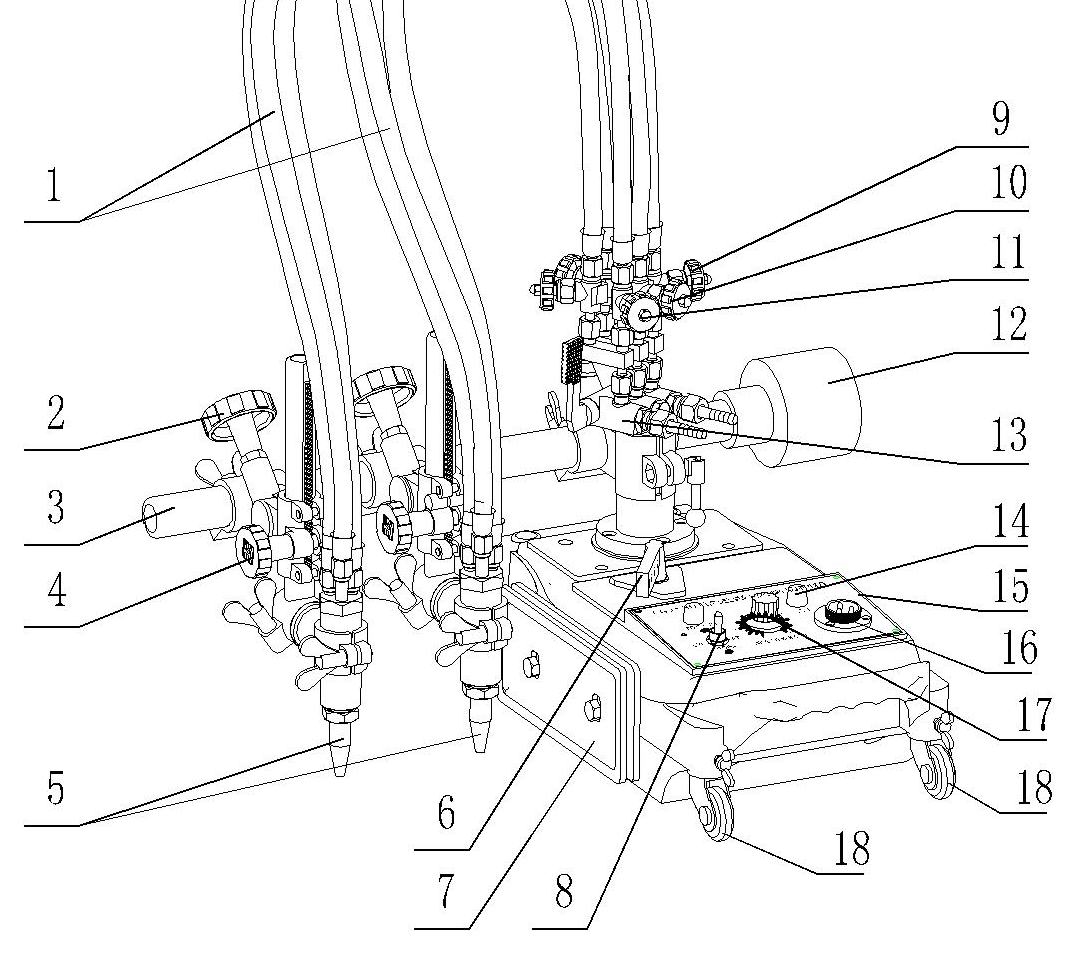 1. 輸送氣體的軟管:一共三根,分別為燃氣;預熱氧和切割氧。