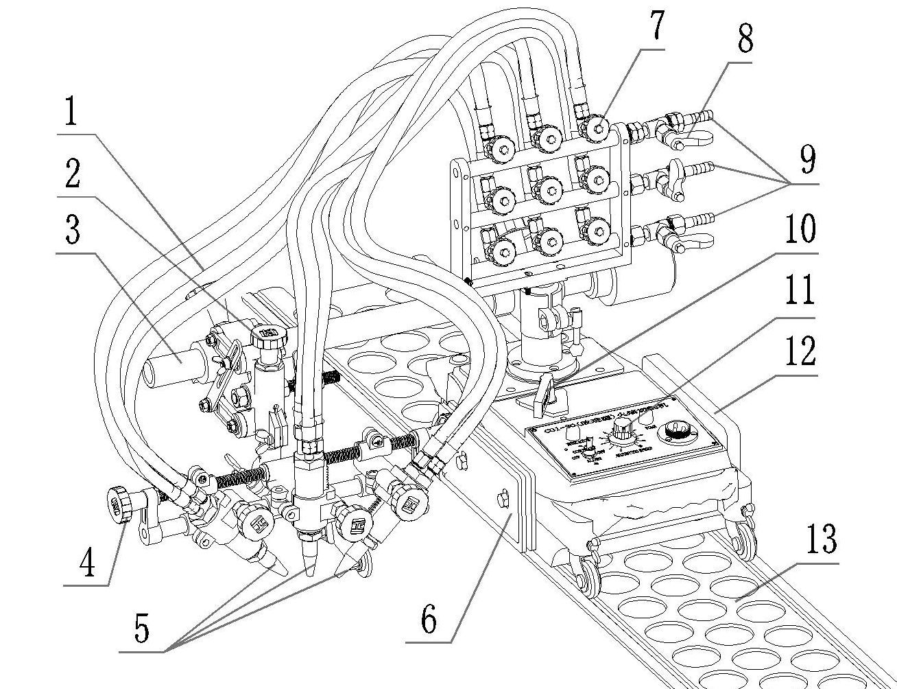 2.移動體升降手輪:調節三組割炬與鋼板的高度