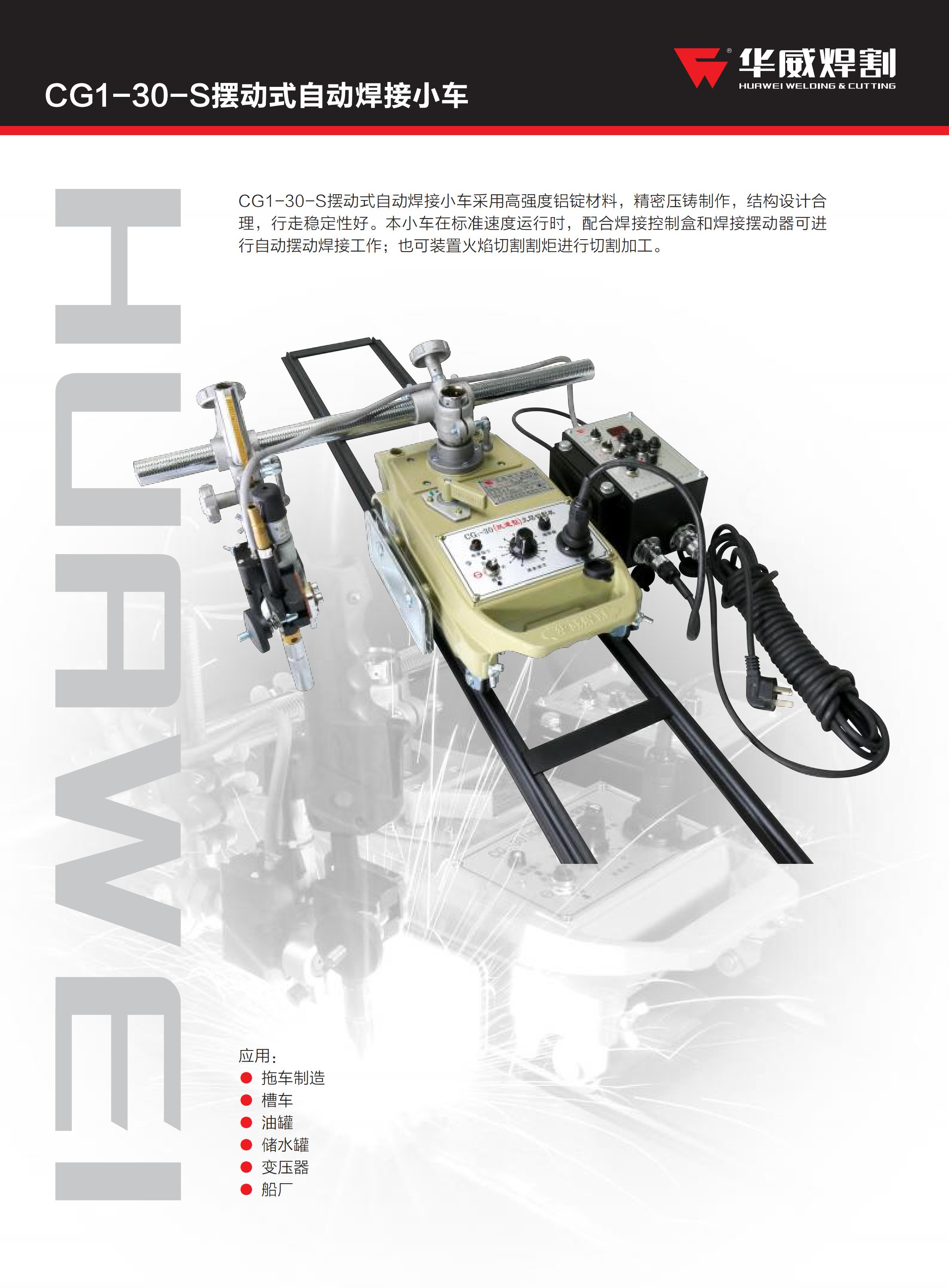 CG1-30-S擺動式自動焊接小車采用高強(qiáng)度鋁錠材料,精密壓鑄制作,結(jié)構(gòu)設(shè)計合理,行走穩(wěn)定性好。本小車在標(biāo)準(zhǔn)速度運行時,配合焊接控制盒和焊接擺動器可進(jìn)行自動擺動焊接工作;也可裝置火焰切割割炬進(jìn)行切割加工。