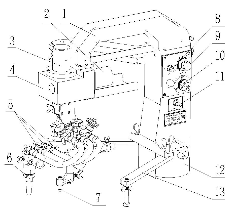 “HK-200”改進型是高精度小圓專用氣體切割機,在基座配有強力電磁鐵,可以牢固的吸附在鋼板上,實現了傾斜面或垂直面的圓形切割,減少對工件的吊裝。氣路采用了無限旋轉氣體分配器,保證在切割過程中軟管永不纏繞。在割圓的同時還可以進行坡口的切割。該機輕便易攜帶,帶有圓心定位裝置,操作方便靈活。