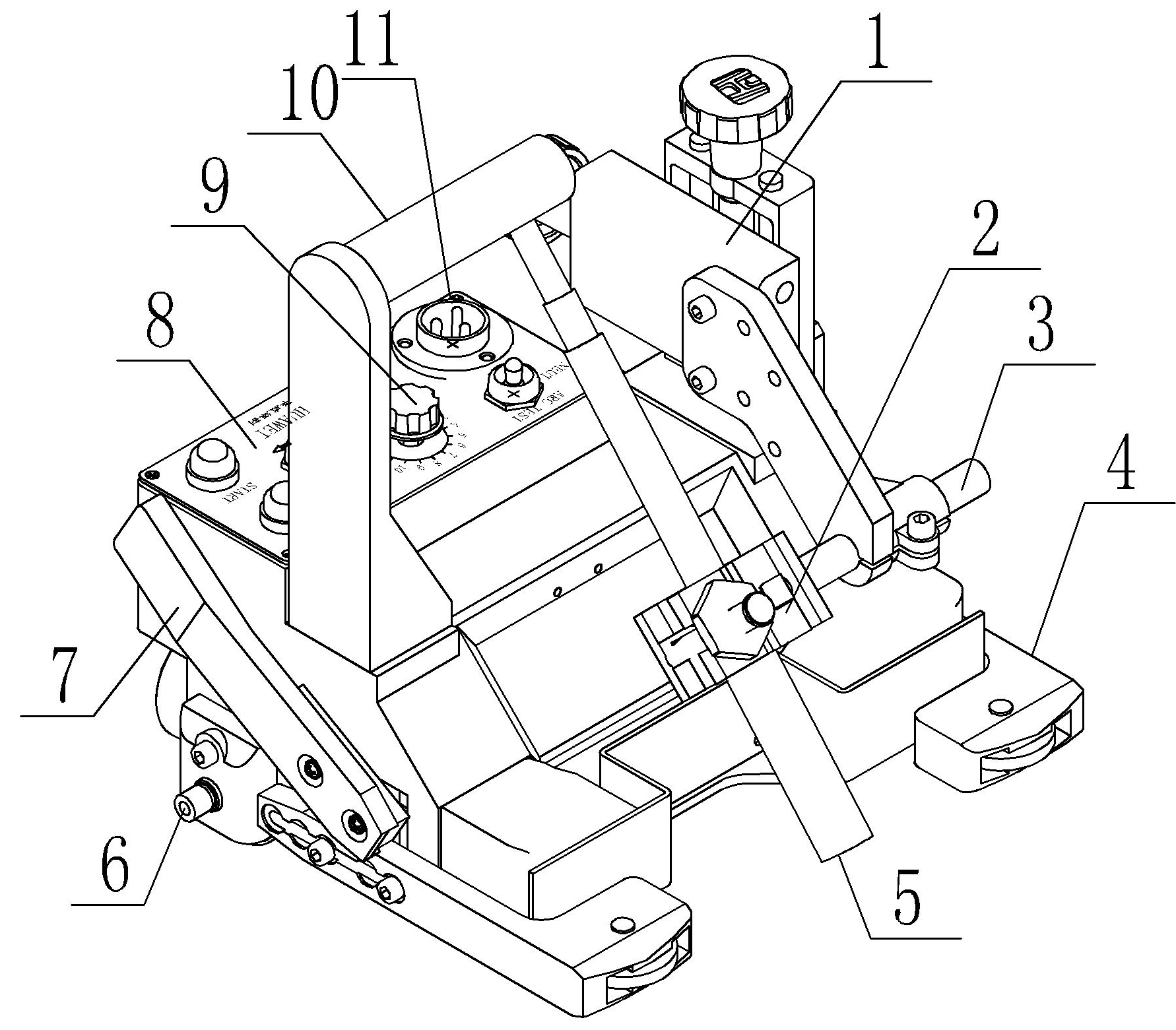 1. 焊炬調整滑塊:起弧點可以利用此裝置進行上/下、前/后的調整,行程各有45mm。