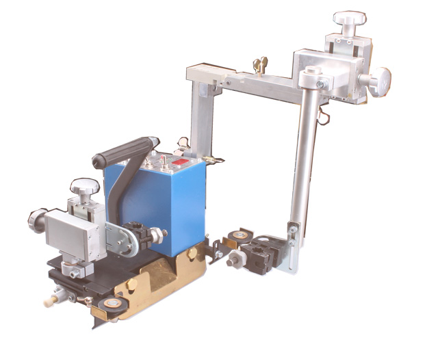 HK-5B-II型小車是適用于間斷或者連續的水平角焊結構的雙面焊接自動裝置。焊接/非焊接區間的實際距離顯示屏上,用扳動開關的上下調節,設定焊接與非焊接的距離,焊接與非焊接的距離是用電機與控制器控制,尺寸的精密度高,運行速度均勻,可實現精密焊接。非焊接狀態下的小車行走速度為最大值(1900mm./min)。手柄為磁控式,移動此手柄可以部分的減少磁力,便于清理鐵質垃圾和移動小車。設有收弧裝置,收弧時間調節范圍在0-7 S。可以向左右兩方向焊接;小車兩端安裝有感應停止開關,焊接結束后小車可以自動停止,便于一個工人同時操縱多臺設備。安裝有永久磁鐵,避免小車脫離焊接線的現象。焊槍支架長度和高度可以根據工件形狀進行調節,使用方便體積小、重量輕,移動和安裝都很方便。