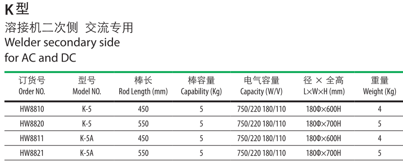 K型 熔接機(jī)二次側(cè)交流專用。