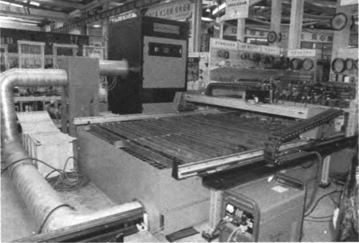 工業企業生產車間中使用的焊接設備,如焊條電弧焊、CO,氣體保護焊機、氬弧焊機、埋弧焊機等焊接設備會產生大量的焊接煙塵;在金屬下料過程中由于加工精度的需要,有的企業會使用數控等離子切割機,在等離子切割的過程中由于金屬熔化與高速氣體碰撞瞬間產生大量的煙塵;在金屬打磨過程中,也會產生大量的金屬粉塵。金屬在焊接、打磨和切割過程中會產生各種有害氣體和煙塵,這些有害氣體及煙塵特點是粒徑非常細小,0.5“m以下約占70%,0.5 u m以上約占30%,懸浮能力強。這些有害氣體及煙塵對人體危害可歸納為三個方面:①對人體中樞神經的損害。②對人體內臟的損害。③對人體皮膚及呼吸道的損害。操作工焊接lh相當于吸58盒20支裝香煙的危害。科學研討以及健康查詢表明:切割煙塵中存在很多可吸入物質(如氧化錳以及鉀、鈉的氧化物等),一旦這些物質進入人體,會對人體造成很大的損傷。長時間在便攜式數控切割機煙塵情況下工作的切割操作人員患有慢性支氣管炎等呼吸道疾病的比例明顯高于其他人員,而且可吸人物質還會堆積在人體的骨骼和血液中,導致免疫力下降,甚至誘發癌癥,尤其是近年來隨著很多含有Cr、Mn、Ni等化學成分的切割材料的運用,使切割煙塵對職工健康的影響日益嚴峻。輕型龍門在等離子切割時產生的煙塵彌漫整個車間的情況如圖1所示。