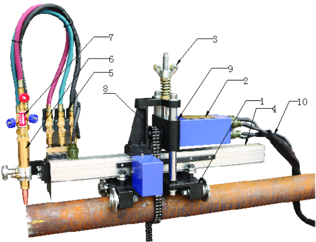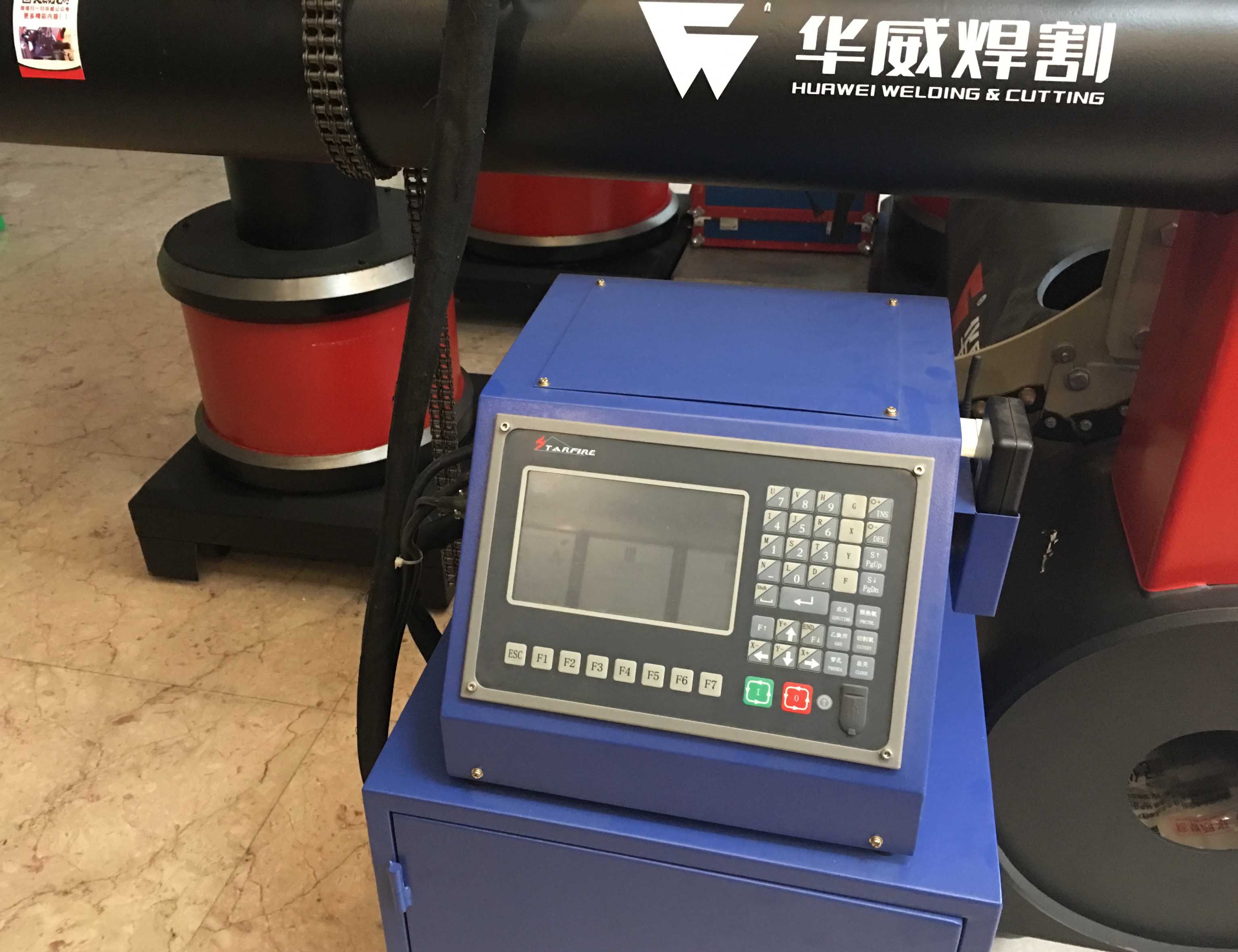 本機(jī)是一種對鋼管端部結(jié)合處作自動計(jì)算和切斷的設(shè)備。該機(jī)器能廣泛應(yīng)用于建筑、化工、機(jī)械、冶金等行業(yè)的管道結(jié)構(gòu)件的切割加工。這些行業(yè)中有大量的管道結(jié)和相貫線孔、相貫線端頭,還有俗稱“蝦米節(jié)”的彎頭,此類加工大多采用制作樣板、劃線、人工放樣、手工切割、人工打磨等落后又繁復(fù)的方法來進(jìn)行。而本機(jī)能十分方便的切割此類工件,并且操作人員不需計(jì)算與手工編程、只需輸入相互配合的管子的半徑、相交角度等參數(shù),機(jī)器就能自動切割出管子的相貫線。
